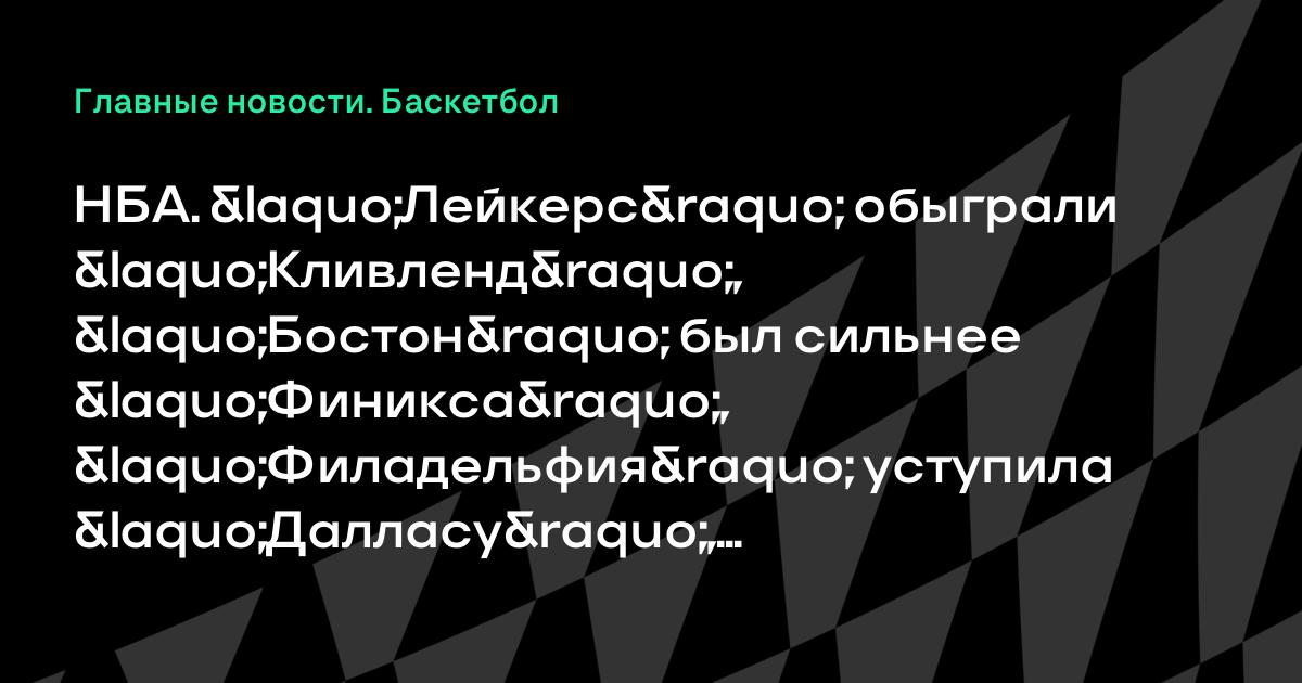 НБА. «Лейкерс» обыграли «Кливленд», «Бостон» был сильнее «Финикса», «Филадельфия» уступила «Далласу», «Хьюстон» выиграл у «Денвера» и другие результаты
