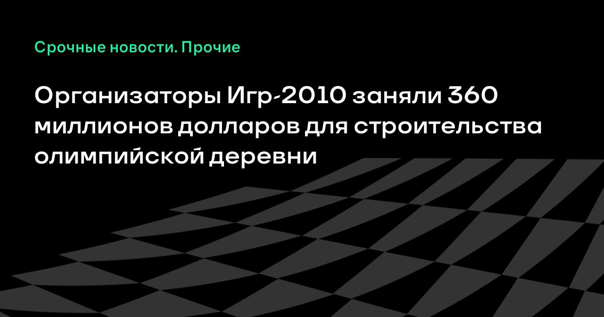 Организаторы Игр-2010 заняли 360 миллионов долларов для строительства олимпийской деревни