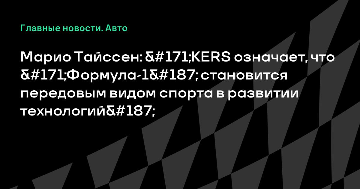 Марио Тайссен: «KERS означает, что «Формула-1» становится передовым видом спорта в развитии технологий»