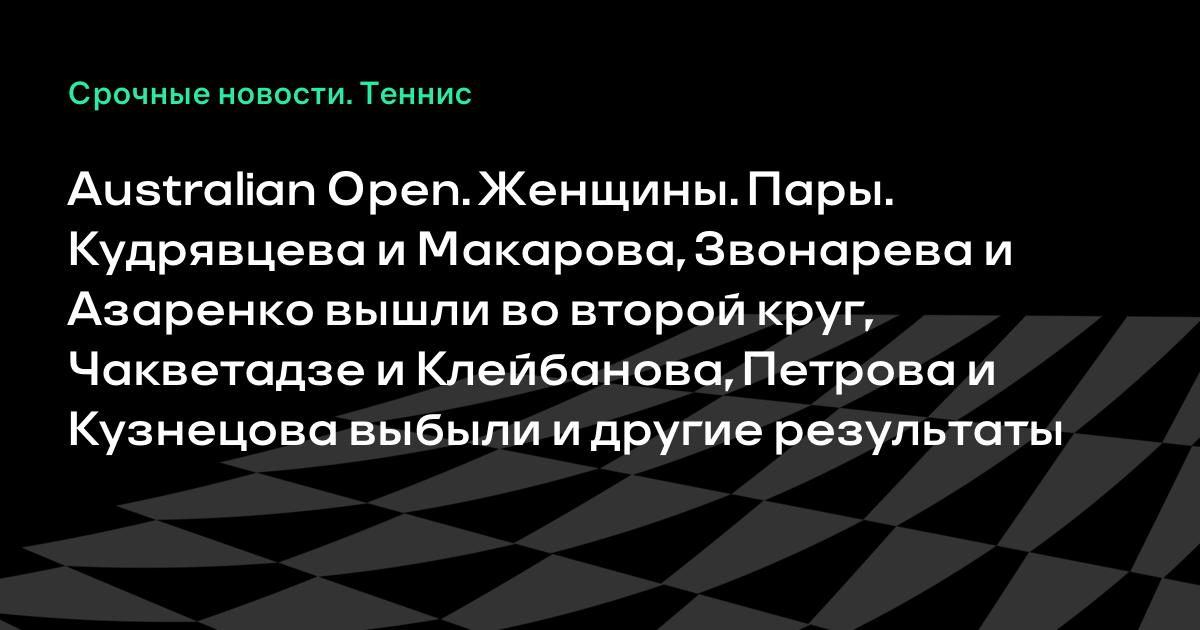 Australian Open. Женщины. Пары. Кудрявцева и Макарова, Звонарева и Азаренко вышли во второй круг, Чакветадзе и Клейбанова, Петрова и Кузнецова выбыли и другие результаты