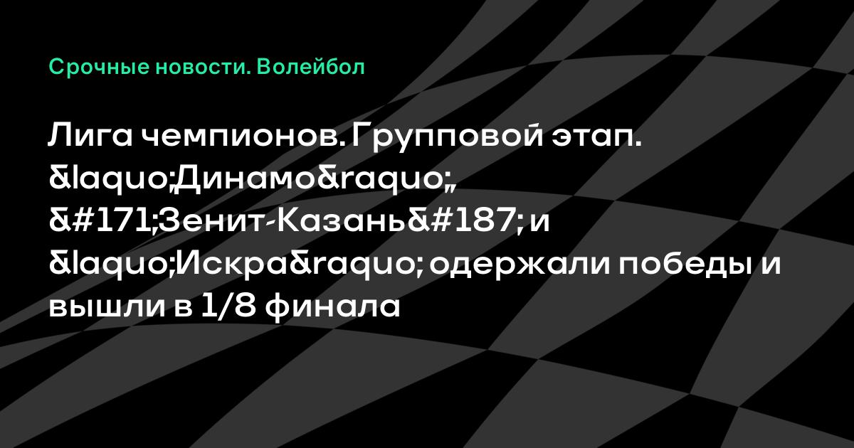Лига чемпионов. Групповой этап. «Динамо», «Зенит-Казань» и «Искра» одержали победы и вышли в 1/8 финала