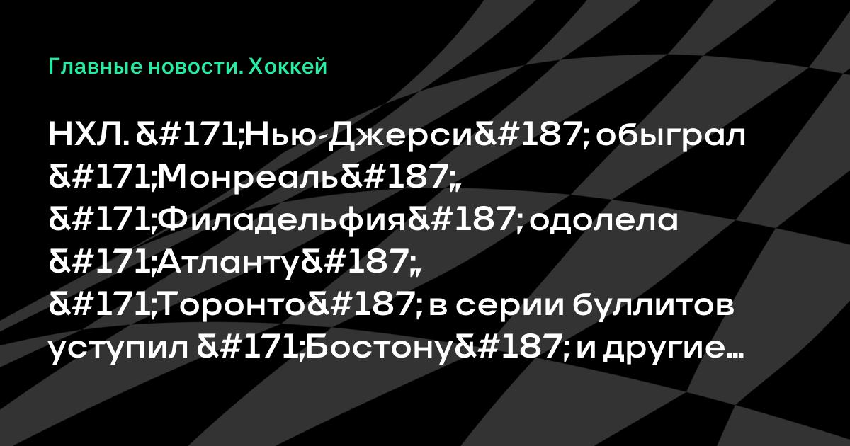 НХЛ. «Нью-Джерси» обыграл «Монреаль», «Филадельфия» одолела «Атланту», «Торонто» в серии буллитов уступил «Бостону» и другие результаты