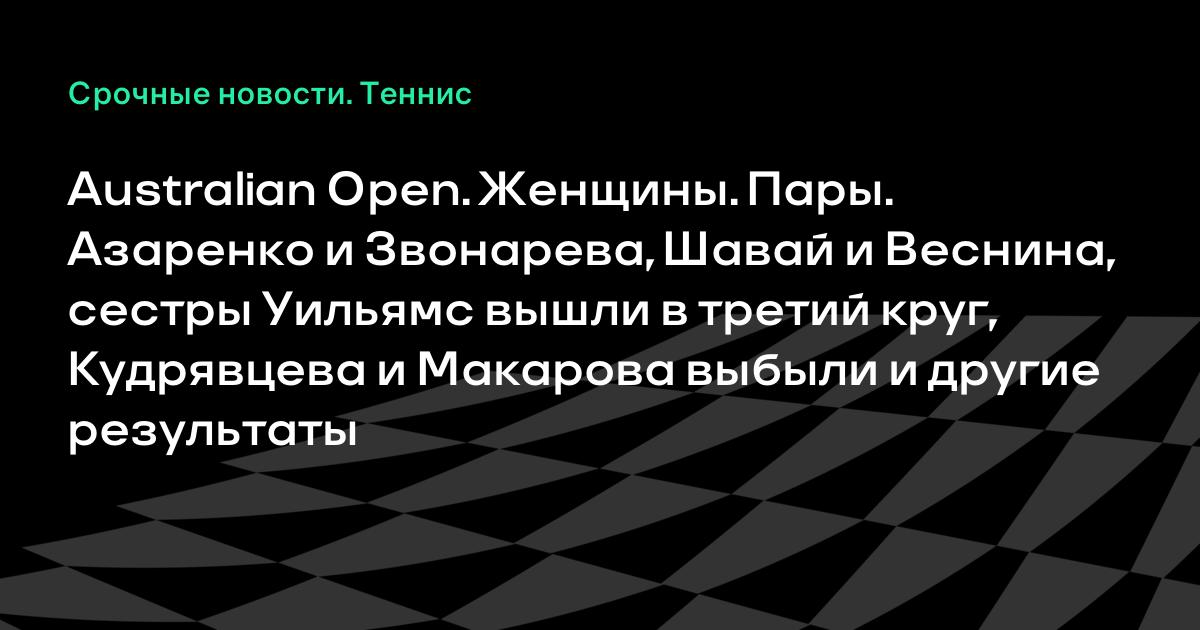 Australian Open. Женщины. Пары. Азаренко и Звонарева, Шавай и Веснина, сестры Уильямс вышли в третий круг, Кудрявцева и Макарова выбыли и другие результаты