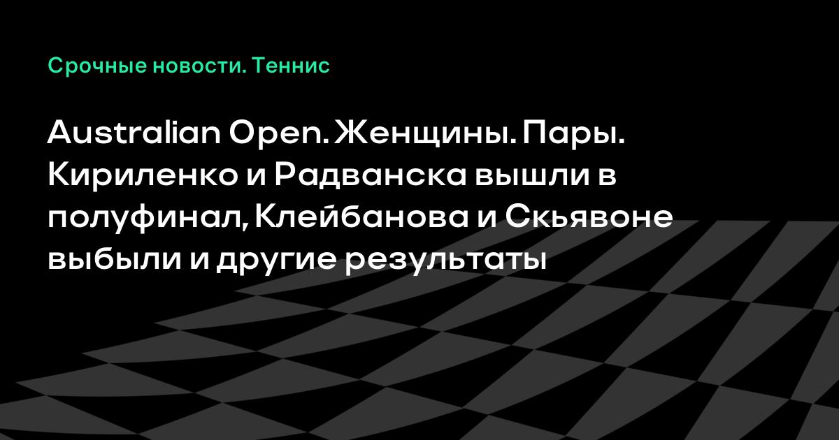 Australian Open. Женщины. Пары. Кириленко и Радванска вышли в полуфинал, Клейбанова и Скьявоне выбыли и другие результаты