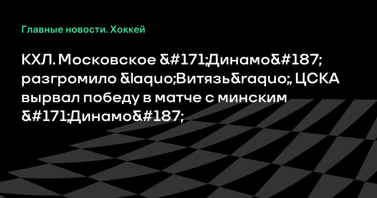 КХЛ. Московское «Динамо» разгромило «Витязь», ЦСКА вырвал победу в матче с минским «Динамо»