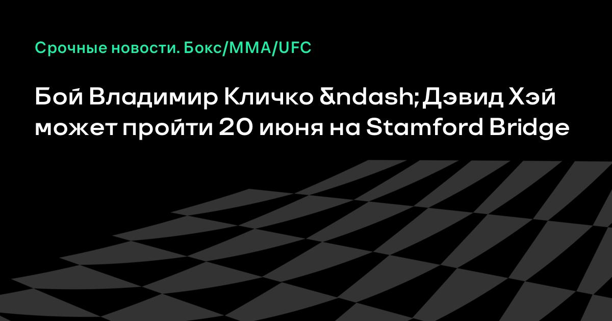 Бой Владимир Кличко – Дэвид Хэй может пройти 20 июня на Stamford Bridge