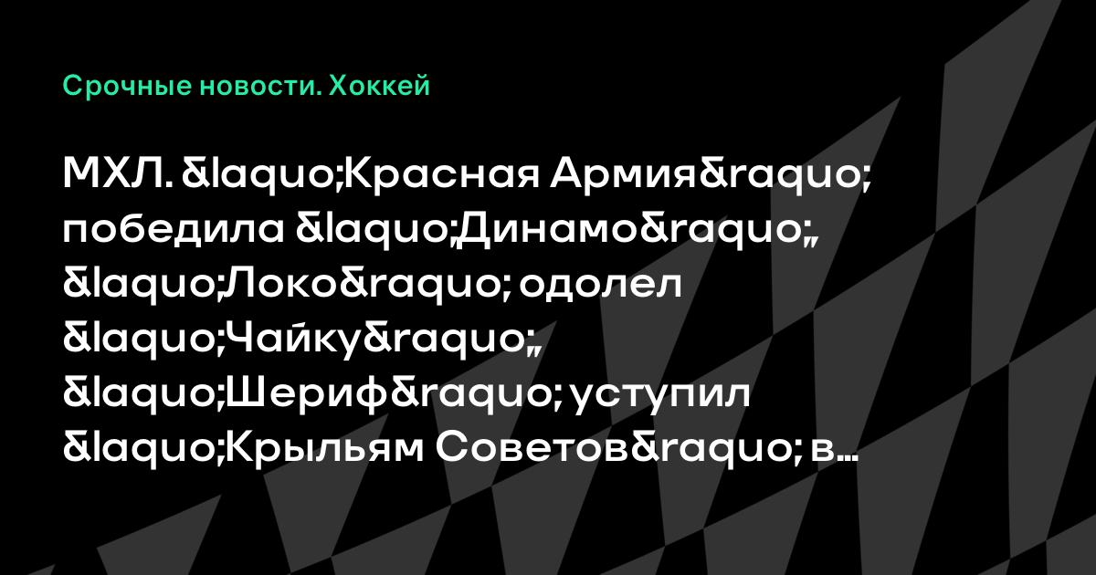 МХЛ. «Красная Армия» победила «Динамо», «Локо» одолел «Чайку», «Шериф» уступил «Крыльям Советов» в овертайме и другие результаты