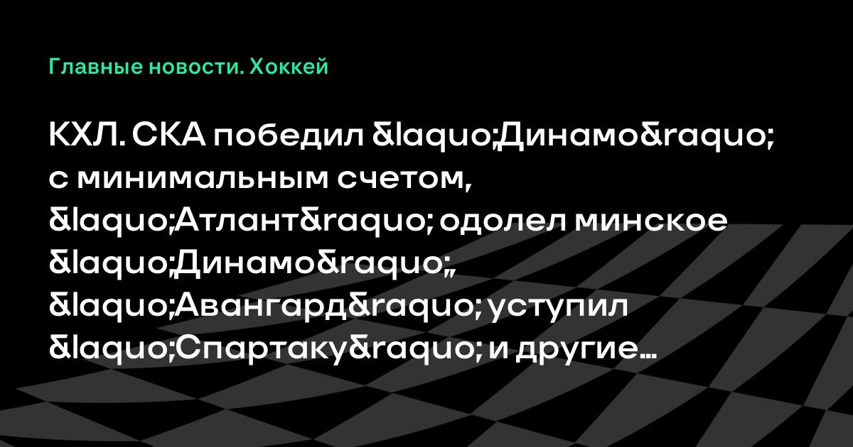 КХЛ. СКА победил «Динамо» с минимальным счетом, «Атлант» одолел минское «Динамо», «Авангард» уступил «Спартаку» и другие результаты