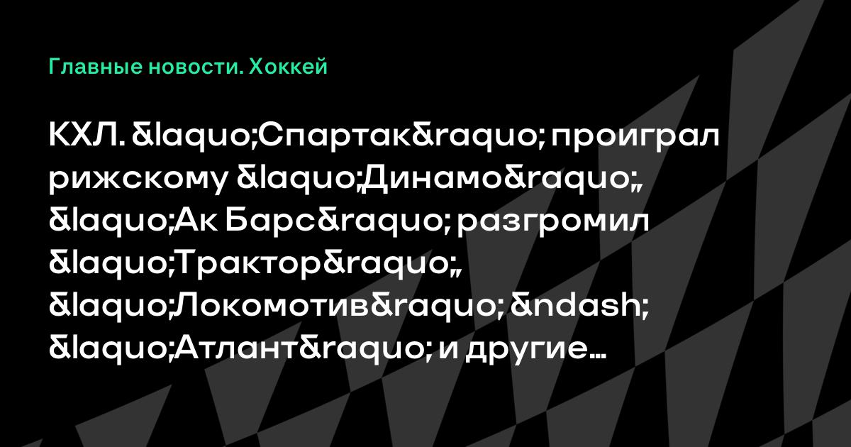 КХЛ. «Спартак» проиграл рижскому «Динамо», «Ак Барс» разгромил «Трактор», «Локомотив» – «Атлант» и другие результаты