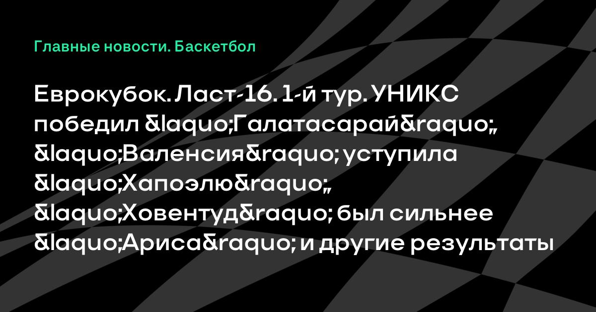 Еврокубок. Ласт-16. 1-й тур. УНИКС победил «Галатасарай», «Валенсия» уступила «Хапоэлю», «Ховентуд» был сильнее «Ариса» и другие результаты