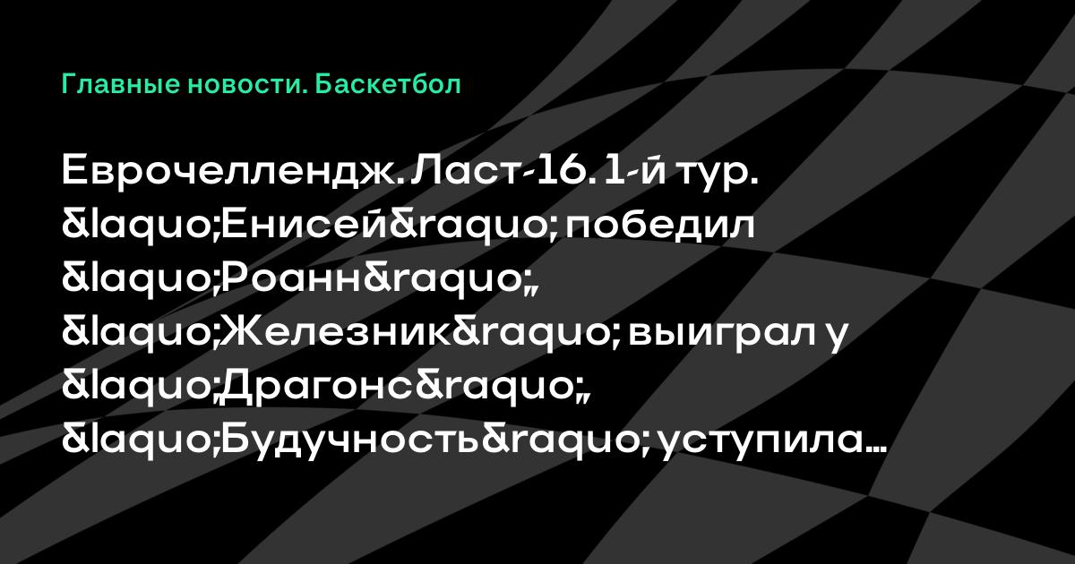 Еврочеллендж. Ласт-16. 1-й тур. «Енисей» победил «Роанн», «Железник» выиграл у «Драгонс», «Будучность» уступила «Шалону» и другие результаты