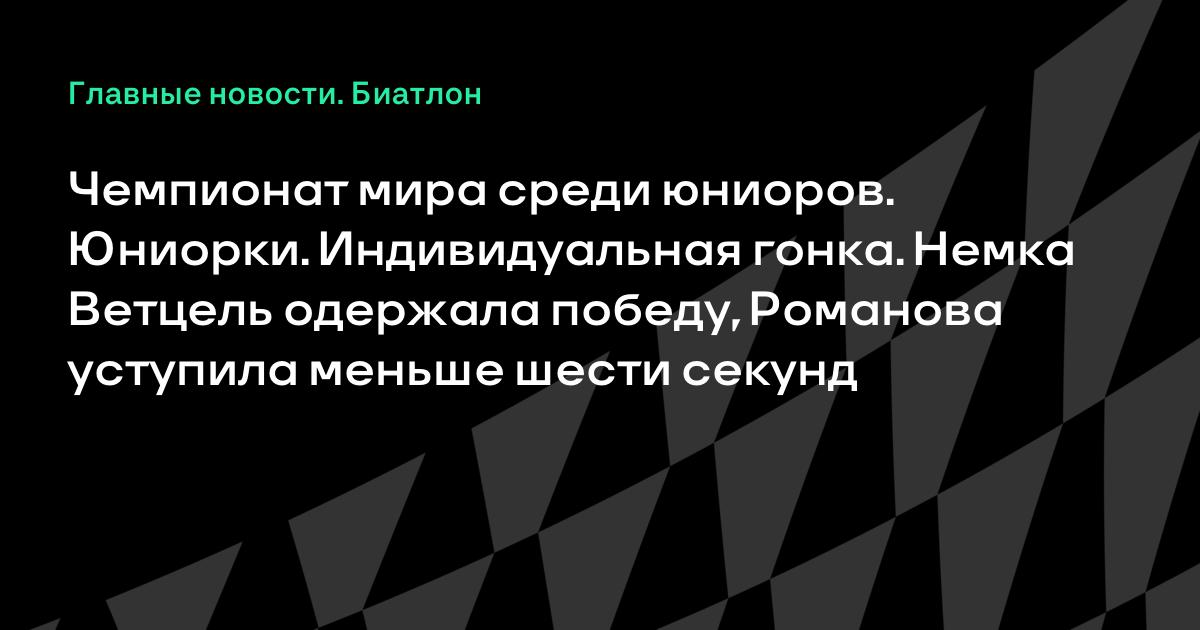 Чемпионат мира среди юниоров. Юниорки. Индивидуальная гонка. Немка Ветцель одержала победу, Романова уступила меньше шести секунд