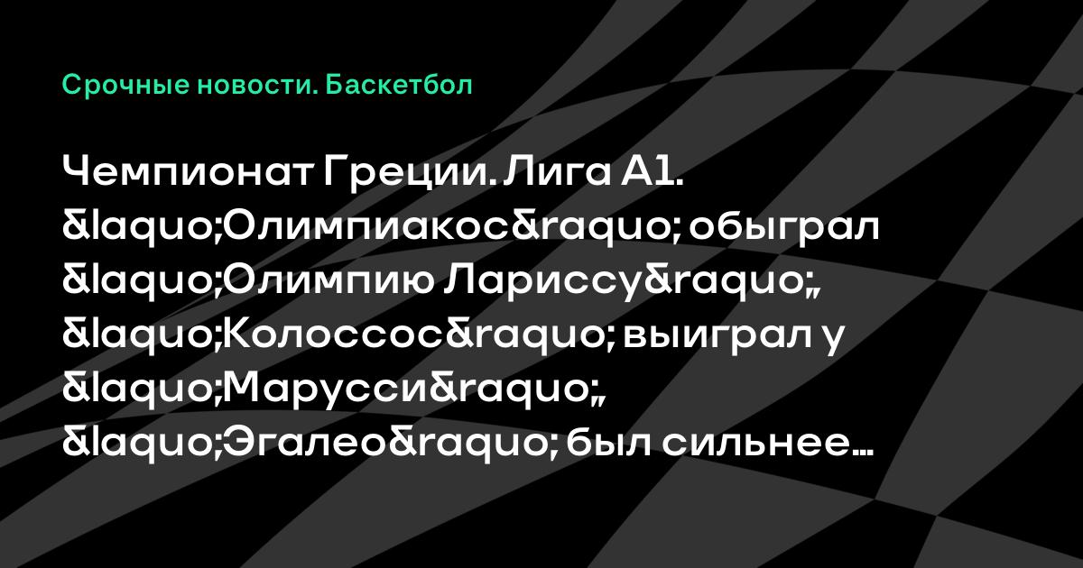 Чемпионат Греции. Лига А1. «Олимпиакос» обыграл «Олимпию Лариссу», «Колоссос» выиграл у «Марусси», «Эгалео» был сильнее «Ариса» и другие результаты