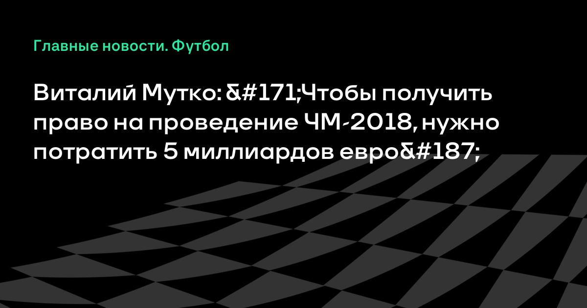 «Для того, чтобы получить право на проведение чемпионата мира по футболу в 2018 году, нужно построит как минимум 10 стадионов с вместимостью 40 тысяч мест. Нужно потратить примерно 5 миллиардов евро. До кризиса мы хотели строить арены за счет инвестиций, привлечения местного бизнеса, но сегодня в условиях кризиса сделать это будет крайне сложно. Кроме того, есть вопросы по инфраструктуре: гостиницы, аэропорты...