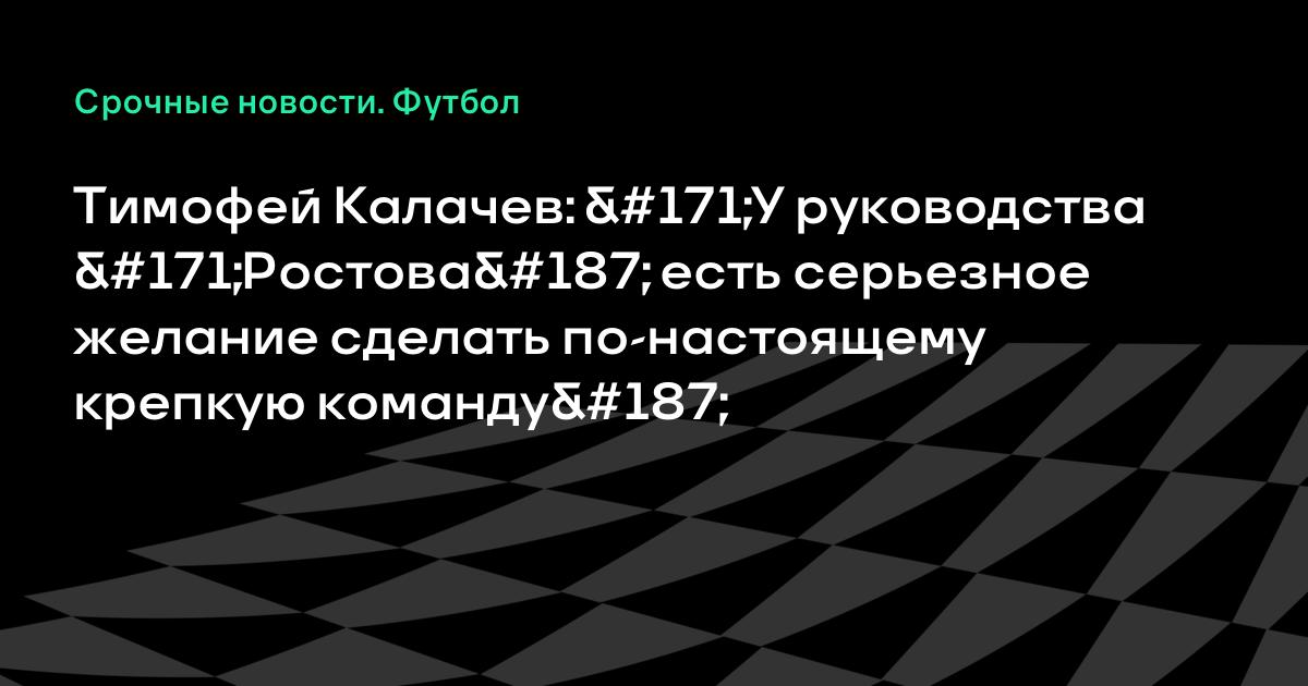 Тимофей Калачев: «У руководства «Ростова» есть серьезное желание сделать по-настоящему крепкую команду»