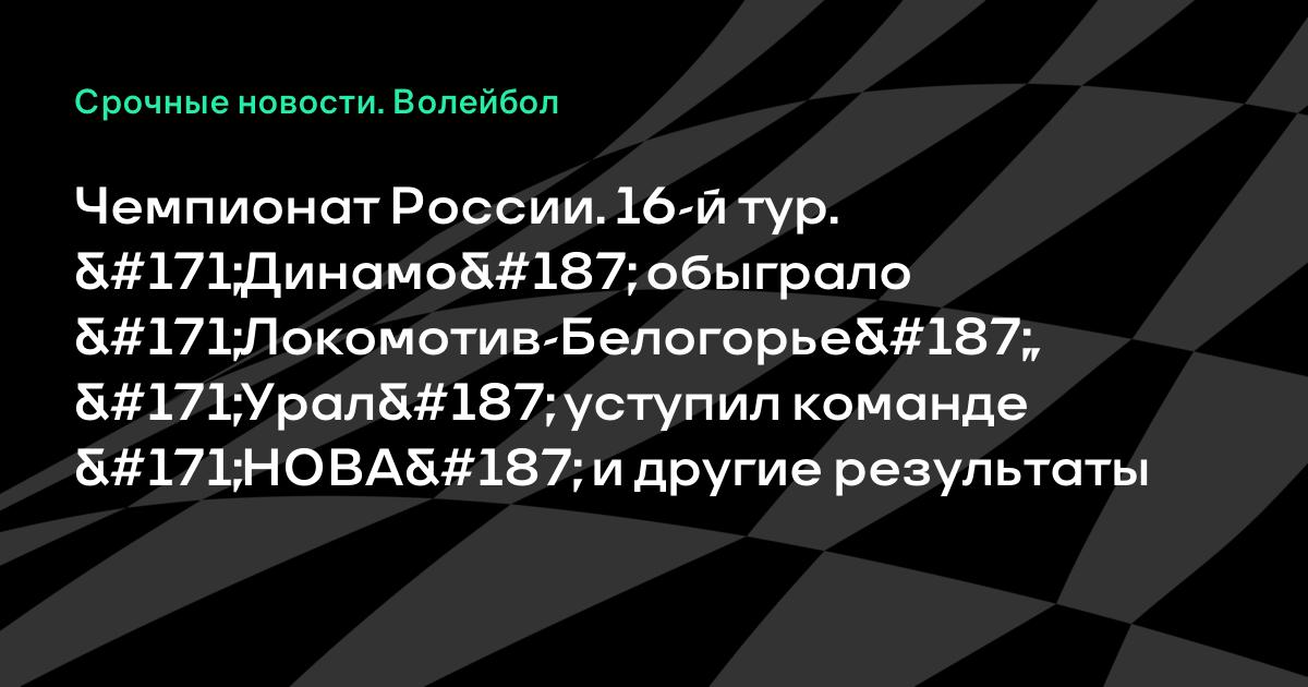 Чемпионат России. 16-й тур. «Динамо» обыграло «Локомотив-Белогорье», «Урал» уступил команде «НОВА» и другие результаты