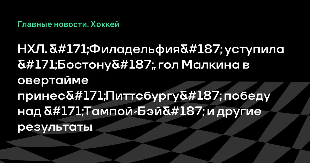 НХЛ. «Филадельфия» уступила «Бостону», гол Малкина в овертайме принес«Питтсбургу» победу над «Тампой-Бэй» и другие результаты