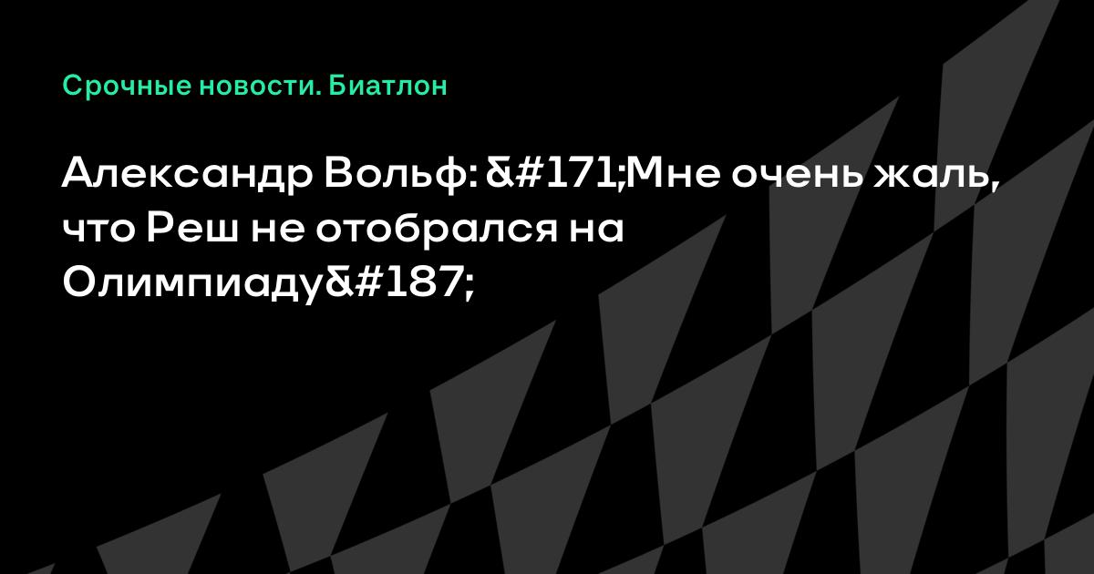 Мне очень жаль, что Михаэль Реш не отобрался на Олимпиаду. Но я уверен, что он вернется с новыми силами», – рассказал Вольф на своем официальном сайте.