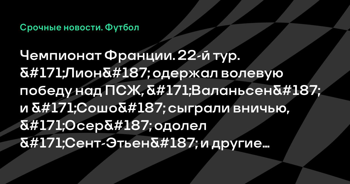 Чемпионат Франции. 22-й тур. «Лион» одержал волевую победу над ПСЖ, «Валаньсен» и «Сошо» сыграли вничью, «Осер» одолел «Сент-Этьен» и другие результаты