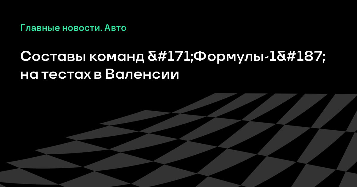 Стали известны составы команд, участвующих в первой тестовой сессии «Формулы-1», которая пройдет в Валенсии с 1 по 3 февраля. Всего из 13 участников чемпионата в Испании начнут работу только 7 конюшен. «Ред Булл» сознательно пошел на пропуск первой сессии ради дополнительных дней работы над болидом, аналогично рассудили и в «Форс-Индии». Кроме этих двух конюшен в Валенсии не будет четверки дебютантов: «Лотуса», «Верджин», US F1 и «Кампоса».