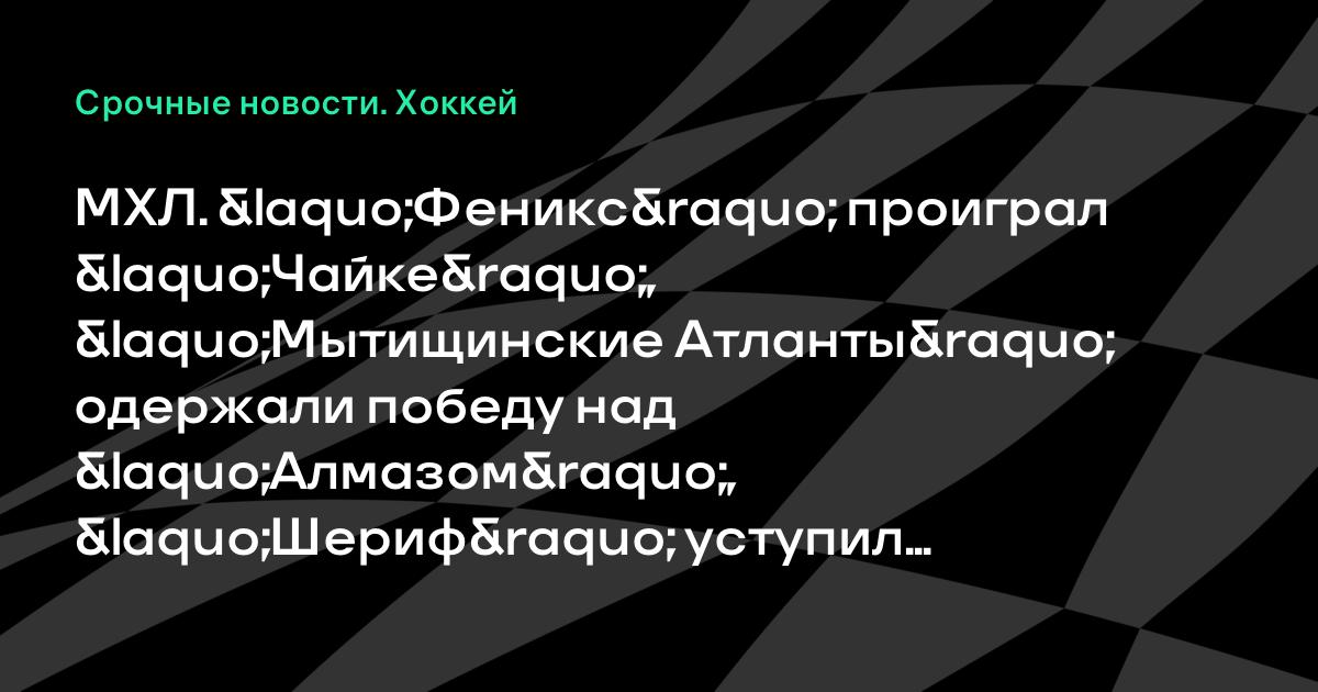 МХЛ. «Феникс» проиграл «Чайке», «Мытищинские Атланты» одержали победу над «Алмазом», «Шериф» уступил «Красной Армии», «Локо» против «Спартака» и другие матчи
