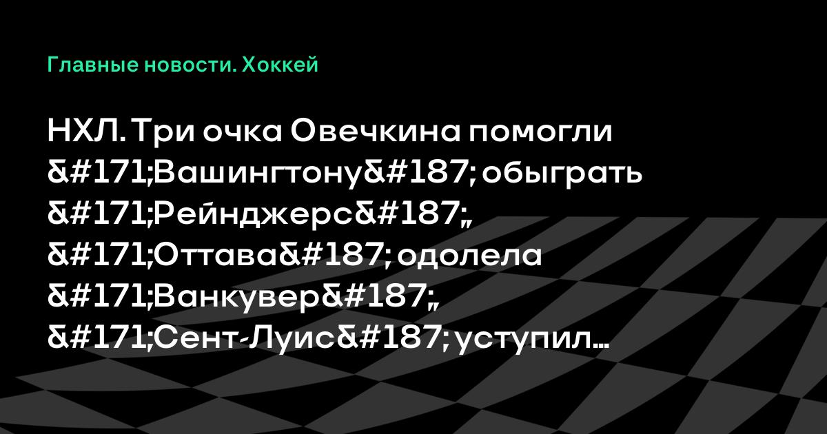 НХЛ. Три очка Овечкина помогли «Вашингтону» обыграть «Рейнджерс», «Оттава» одолела «Ванкувер», «Сент-Луис» уступил «Сан-Хосе» и другие результаты