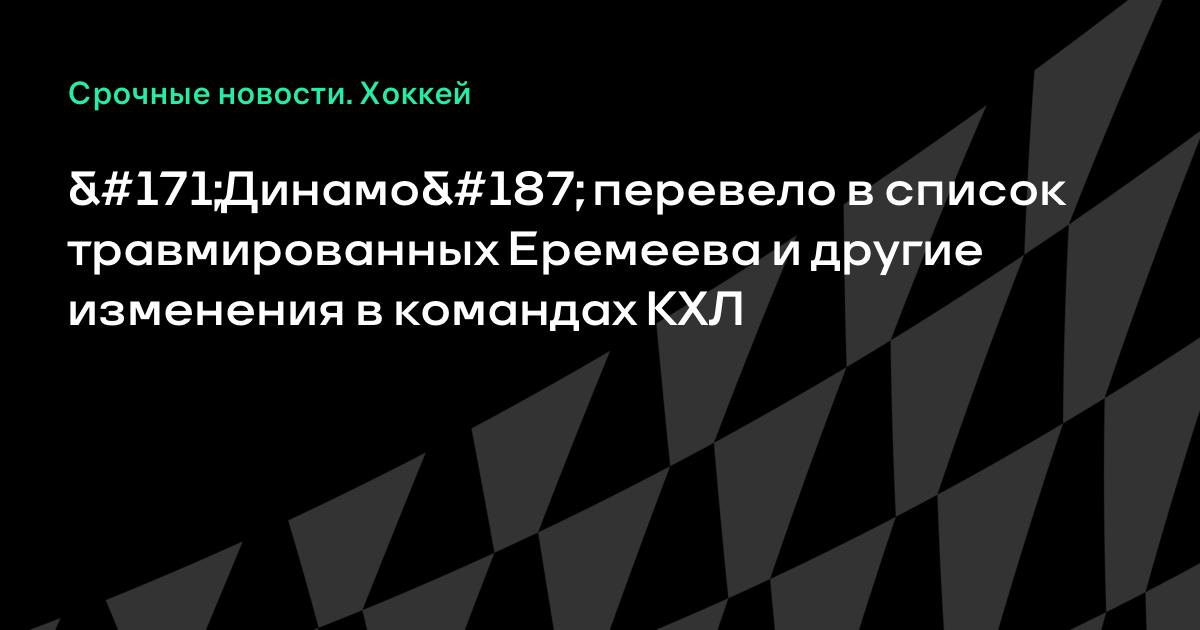 «Динамо» перевело в список травмированных Еремеева и другие изменения в командах КХЛ