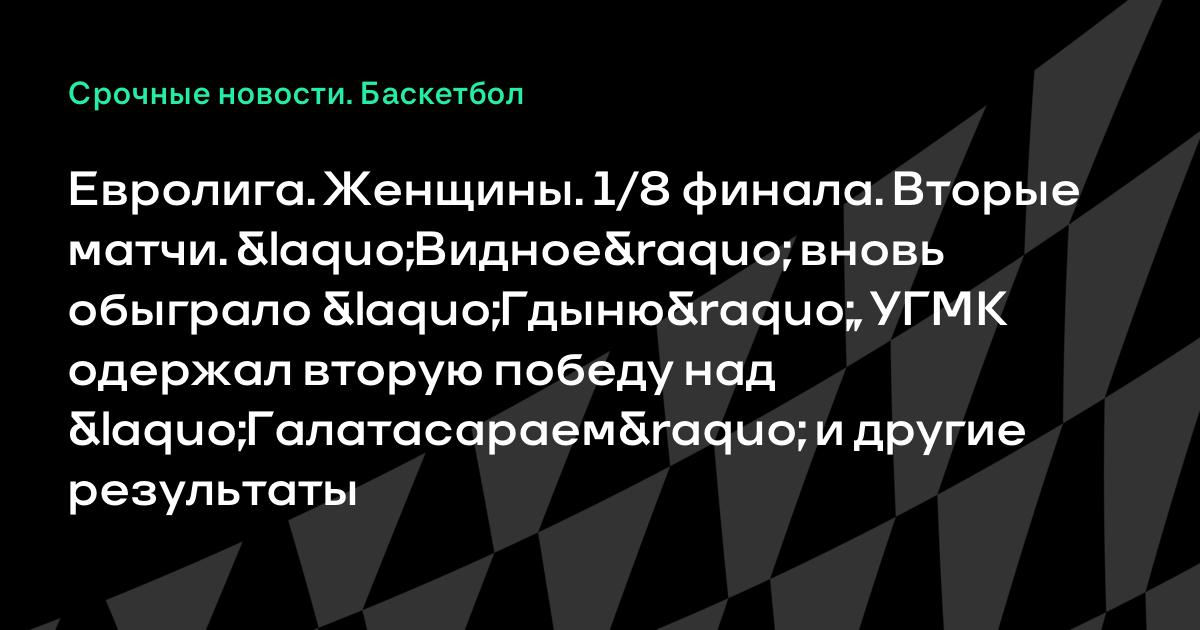 Евролига. Женщины. 1/8 финала. Вторые матчи. «Видное» вновь обыграло «Гдыню», УГМК одержал вторую победу над «Галатасараем» и другие результаты
