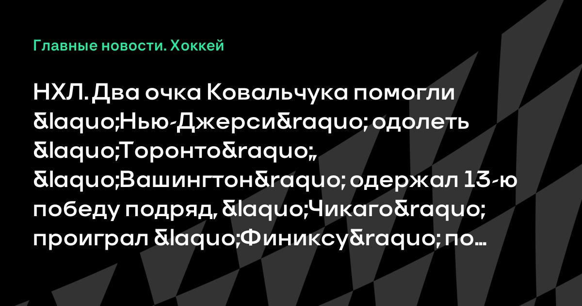 НХЛ. Два очка Ковальчука помогли «Нью-Джерси» одолеть «Торонто», «Вашингтон» одержал 13-ю победу подряд, «Чикаго» проиграл «Финиксу» по буллитам и другие результаты
