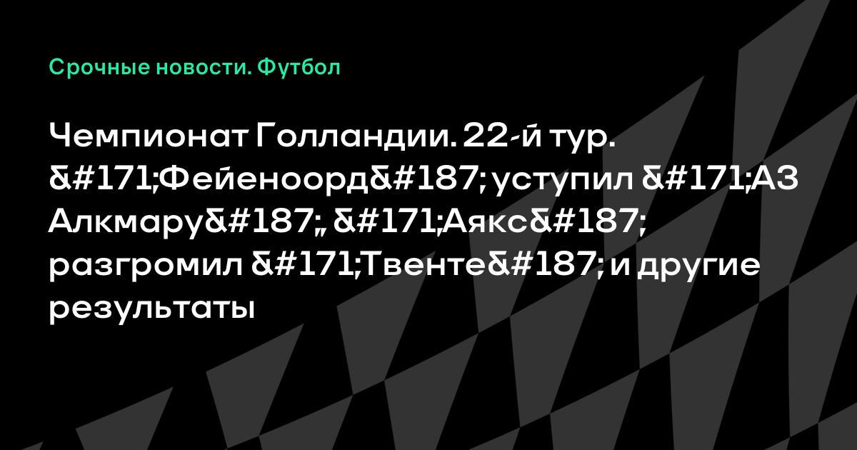 Чемпионат Голландии. 22-й тур. «Фейеноорд» уступил «АЗ Алкмару», «Аякс» разгромил «Твенте» и другие результаты