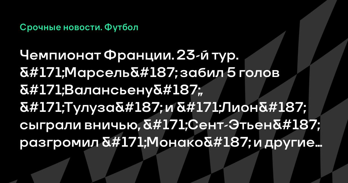 Чемпионат Франции. 23-й тур. «Марсель» забил 5 голов «Валансьену», «Тулуза» и «Лион» сыграли вничью, «Сент-Этьен» разгромил «Монако» и другие результаты
