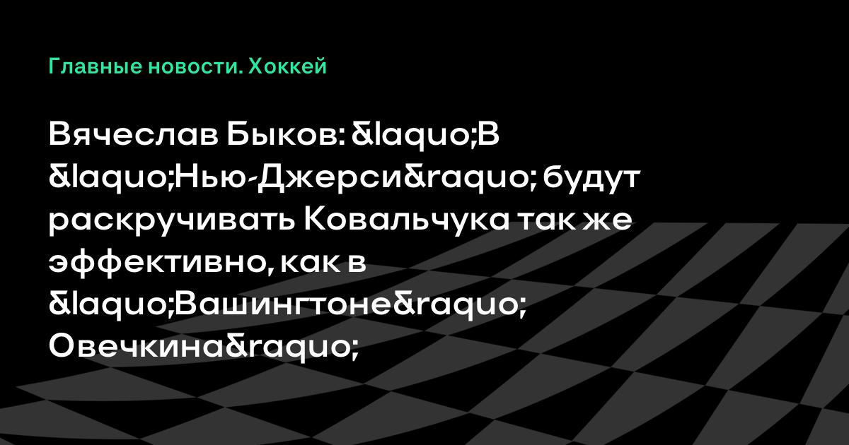 Вячеслав Быков: «В «Нью-Джерси» будут раскручивать Ковальчука так же эффективно, как в «Вашингтоне» Овечкина»