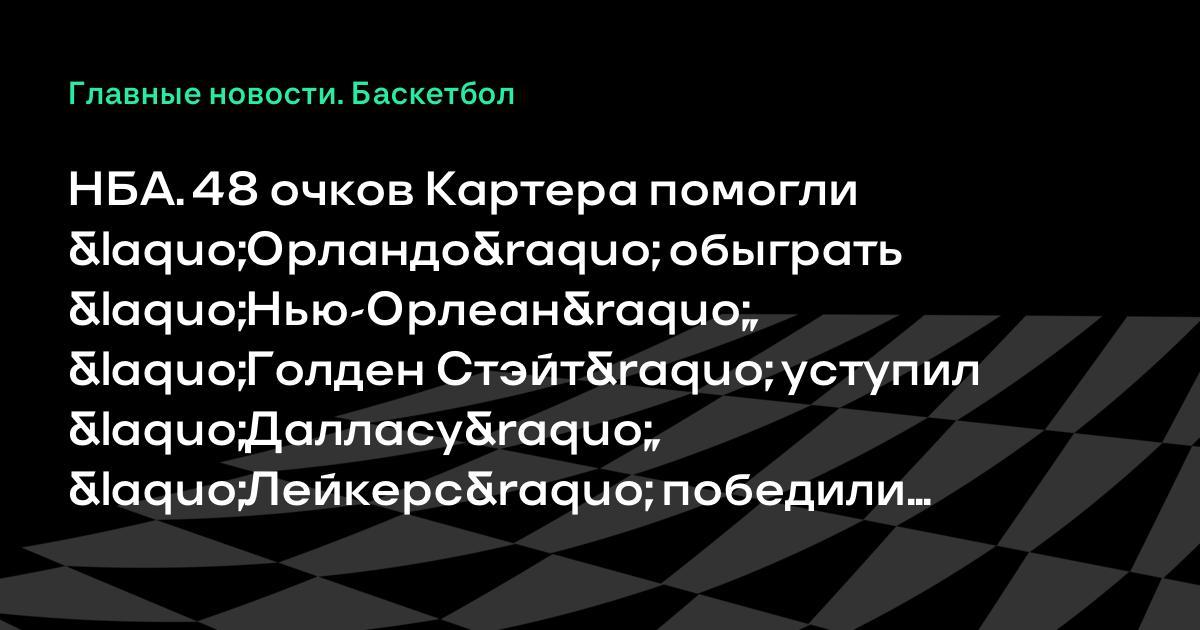 НБА. 48 очков Картера помогли «Орландо» обыграть «Нью-Орлеан», «Голден Стэйт» уступил «Далласу», «Лейкерс» победили «Сан-Антонио