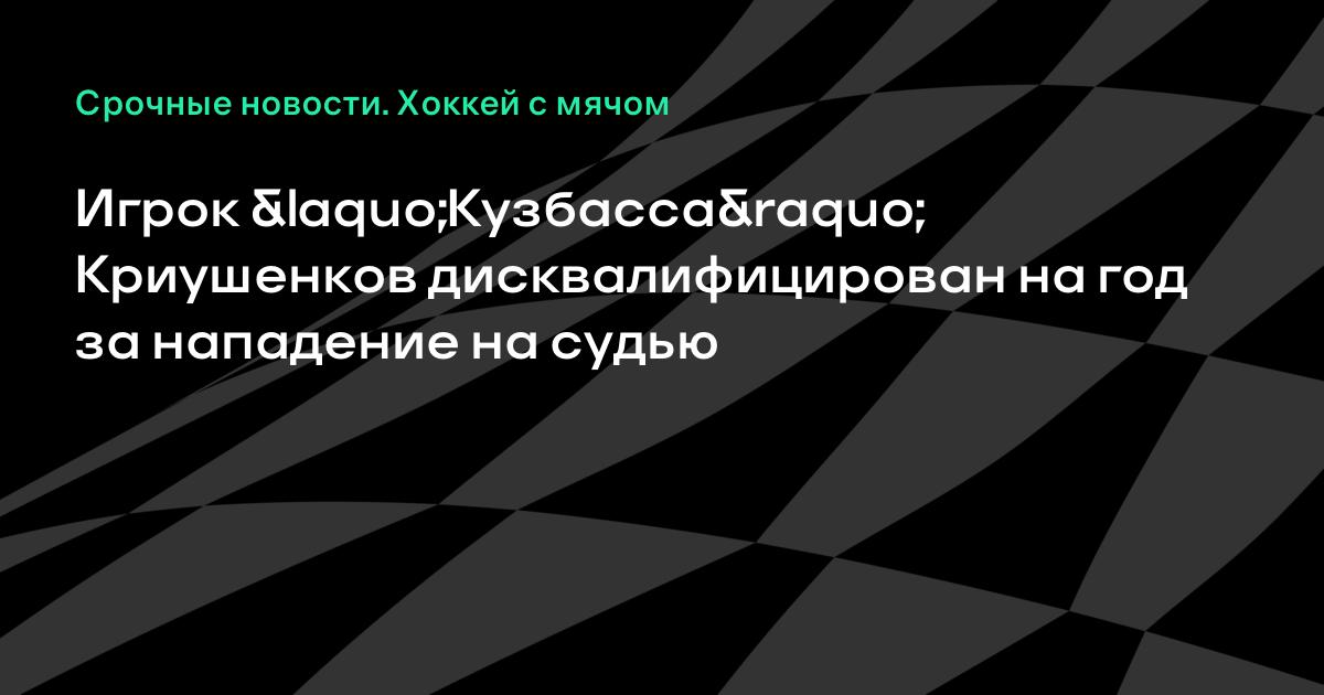 Игрок «Кузбасса» Криушенков дисквалифицирован на год за нападение на судью