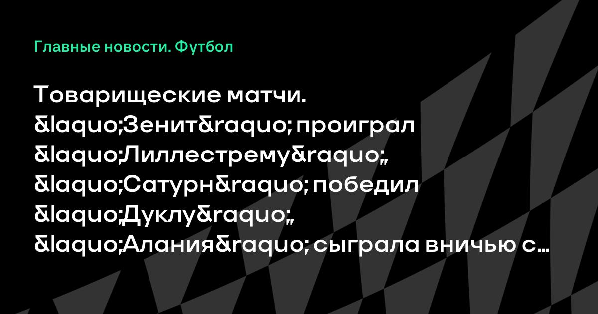 Товарищеские матчи. «Зенит» проиграл «Лиллестрему», «Сатурн» победил «Дуклу», «Алания» сыграла вничью с клубом из Узбекистана