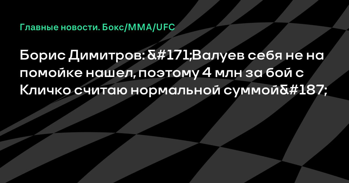Борис Димитров: «Валуев себя не на помойке нашел, поэтому 4 млн за бой с Кличко считаю нормальной суммой»