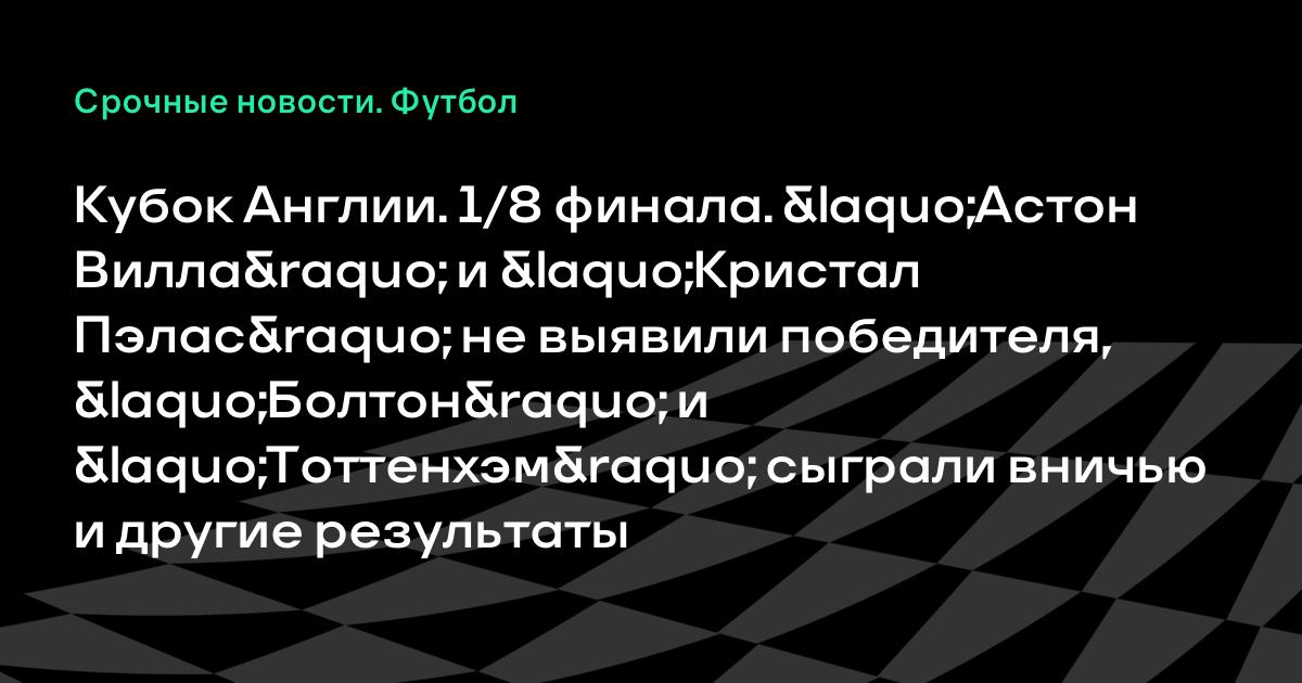 Кубок Англии. 1/8 финала. «Астон Вилла» и «Кристал Пэлас» не выявили победителя, «Болтон» и «Тоттенхэм» сыграли вничью и другие результаты