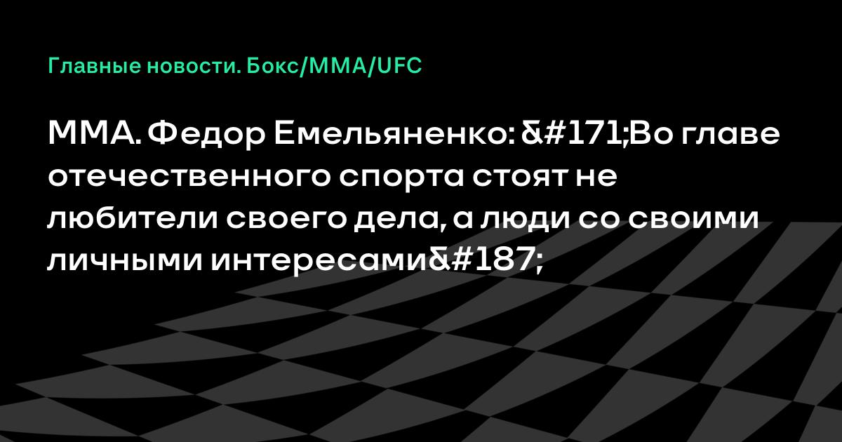 MMA. Федор Емельяненко: «Во главе отечественного спорта стоят не любители своего дела, а люди со своими личными интересами»