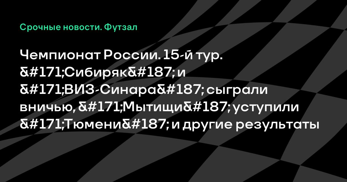 Чемпионат России. 15-й тур. «Сибиряк» и «ВИЗ-Синара» сыграли вничью, «Мытищи» уступили «Тюмени» и другие результаты