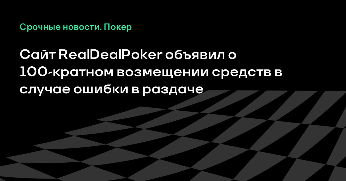 Сайт RealDealPoker объявил о 100-кратном возмещении средств в случае ошибки в раздаче