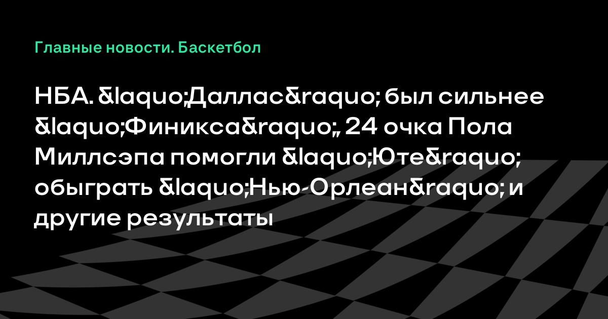 НБА. «Даллас» был сильнее «Финикса», 24 очка Пола Миллсэпа помогли «Юте» обыграть «Нью-Орлеан» и другие результаты