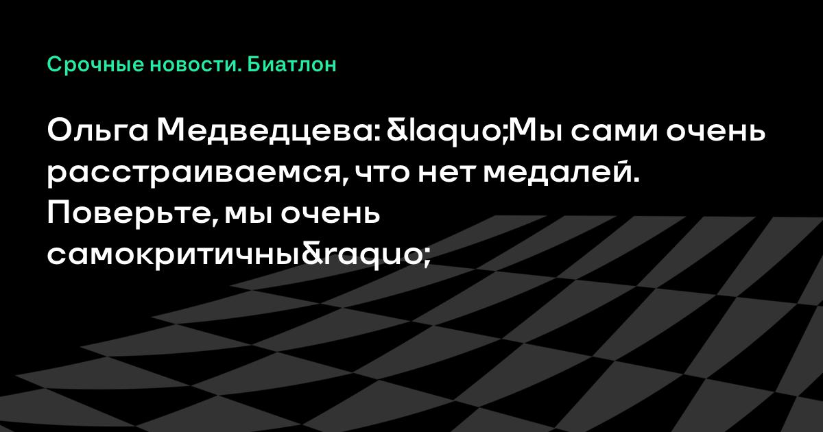 «Мы сами очень расстраиваемся, что после шести гонок у российских биатлонистов нет ни одной медали и, поверьте, мы очень самокритичны. Не показываем этого, но самоедством занимаемся. Давайте смотреть правде в глаза: этот сезон не самый удачный. В этом году у нас всего шесть подиумов на большую половину сезона. Поверьте, мы делаем все возможное, чтобы выступить как можно лучше. Остается теперь работать над ошибками», приводит слова Медведцевой официальный сайт СБР.
