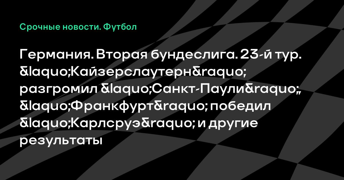 Германия. Вторая бундеслига. 23-й тур. «Кайзерслаутерн» разгромил «Санкт-Паули», «Франкфурт» победил «Карлсруэ» и другие результаты