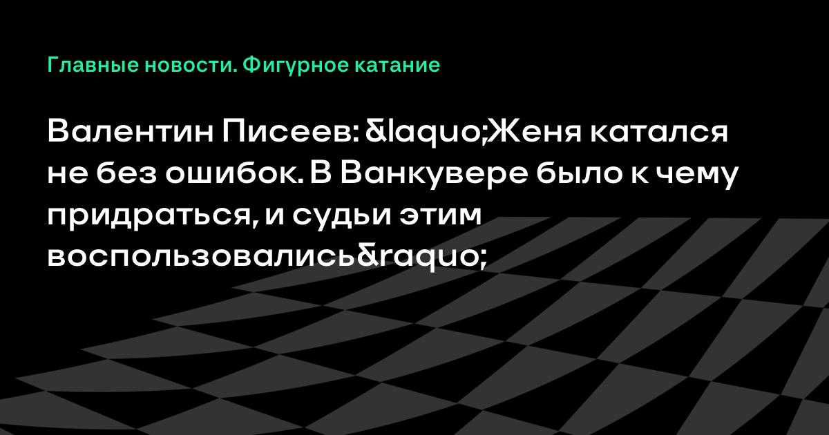 Валентин Писеев: «Женя катался не без ошибок. В Ванкувере было к чему придраться, и судьи этим воспользовались»