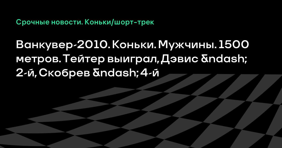 Ванкувер-2010. Коньки. Мужчины. 1500 метров. Тейтер выиграл, Дэвис – 2-й, Скобрев – 4-й