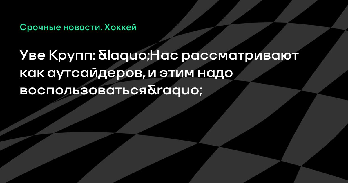 Уве Крупп: «Нас рассматривают как аутсайдеров, и этим надо воспользоваться»