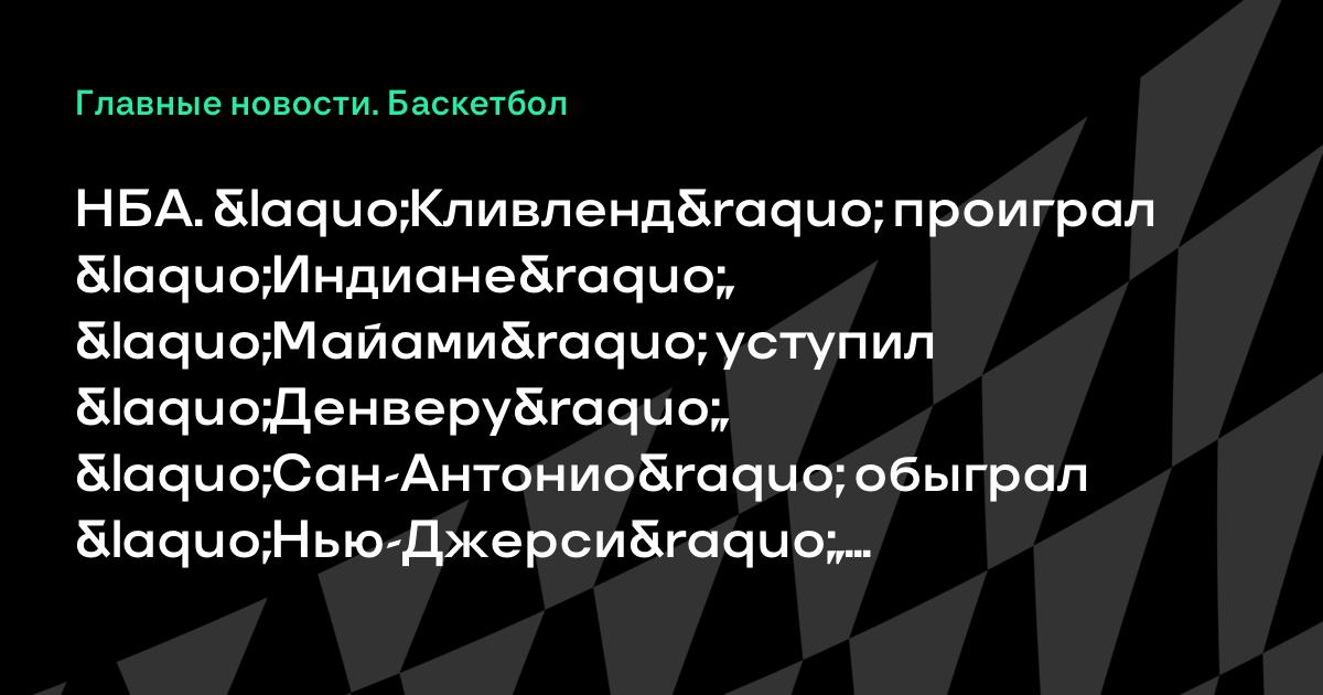 НБА. «Кливленд» проиграл «Индиане», «Майами» уступил «Денверу», «Сан-Антонио» обыграл «Нью-Джерси», «Чикаго» был сильнее «Детройта» и другие результаты