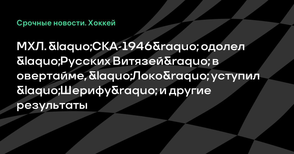 МХЛ. «СКА-1946» одолел «Русских Витязей» в овертайме, «Локо» уступил «Шерифу» и другие результаты