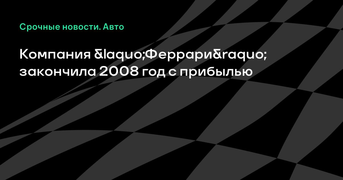 Несмотря на усугубляющийся экономический кризис, особенно сильно ударивший по автоконцернам, производитель элитных автомобилей «Феррари» закончил 2008 год с прибылью в 339 млн евро, на 27 процентов больше, чем в 2007-м. Годовой доход итальянской компании составил 1,921 млрд евро, что на 15,2 процента превышает показатели предыдущего года.