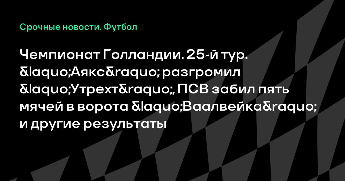 Чемпионат Голландии. 25-й тур. «Аякс» разгромил «Утрехт», ПСВ забил пять мячей в ворота «Ваалвейка» и другие результаты